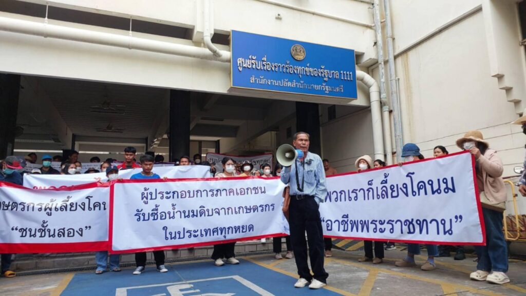 กลุ่มเกษตรกรผู้เลี้ยงโคนมภาคเอกชน นำโดย นายวสันต์ จีนหลง นายกสมาคมผู้ผลิตนมพาสเจอร์ไรส์ และ นายชนะศักดิ์ จุมพลอนันต์ นายกสมาคมกลุ่มเกษตรกรผู้รวบรวมน้ำนมดิบ พร้อมด้วยตัวแทนสมาคมกลุ่มเกษตรกรผู้รวบรวมน้ำนมดิบ สมาคมผู้ผลิตนมพาสเจอร์ไรส์ สมาคม SME ผู้รวบรวมน้ำนมดิบและแปรรูป และเกษตรกรกว่า 200 คน นัดรวมตัวบุกทำเนียบรัฐบาลเช้าวันนี้ (21 มีนาคม 2568) เพื่อยื่นแถลงการณ์ถึงนายกรัฐมนตรี เรียกร้องขอให้ทบทวนมติคณะรัฐมนตรีเมื่อวันที่ 3 มีนาคม 2568 ที่มีการทบทวนและเห็นชอบเรื่องระบบการบริหารจัดการนมโรงเรียน ตามที่กระทรวงเกษตรและสหกรณ์เสนอก่อนหน้านี้ โดยในประเด็นโครงสร้างระบบบริหารโครงการนมโรงเรียน ที่มีการแบ่งกลุ่มพื้นที่จาก 5 เขต พื้นที่เป็น 7 เขตพื้นที่ และการเพิ่มวัตถุประสงค์ของโครงการนมโรงเรียน จำนวน 4 ข้อ ซึ่งอ้างว่าเพื่อให้เกษตรกรผู้เลี้ยงโคนมมีความยั่งยืนในอาชีพ และสหกรณ์โคนม รัฐวิสาหกิจ และสถาบันการศึกษา มีตลาดนมโรงเรียนรองรับนั้น เป็นการแบ่งแยกและเลือกปฏิบัติต่อเกษตรกรผู้เลี้ยงโคนมในประเทศ โดยเป็นการกระทำที่ไม่เห็นความสำคัญของกลุ่มเกษตรกรผู้เลี้ยงโคนมภาคเอกชนที่ประกอบอาชีพโดยสุจริต ไม่เคยร้องขอดอกเบี้ยต่ำจากรัฐ ไม่เคยร้องขอเงินสนับสนุนให้เปล่า และไม่เคยเลี่ยงภาษี แต่กลับถูกละเลย และเลือกปฏิบัติสองมาตรฐานจากภาครัฐมาโดยตลอด