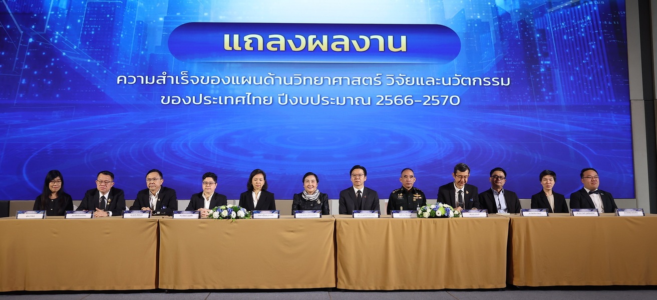 วันที่ 19 ธันวาคม 2568 ศ. ดร.สมปอง คล้ายหนองสรวง ผู้อำนวยการสำนักงานคณะกรรมการส่งเสริมวิทยาศาสตร์ วิจัยและนวัตกรรม (สกสว.) เป็นประธานแถลงข่าวผลงานกองทุนส่งเสริมวิทยาศาสตร์ วิจัยและนวัตกรรม (ววน.) และความสำเร็จของแผนด้าน ววน. ของประเทศ พ.ศ. 2566-2570 ร่วมกับผู้บริหารหน่วยบริหารและจัดการทุน ณ โรงแรมพูลแมน คิง เพาเวอร์ รางน้ำ กรุงเทพฯ เพื่อสะท้อนความสำเร็จเชิงยุทธศาสตร์ของแผนด้าน ววน. ที่นำพาประเทศไทยให้ก้าวหน้าและชนะอย่างภาคภูมิใจ รวมถึงแสดงให้เห็นคุณค่าและผลกระทบที่ ววน. ส่งมอบแก่ประเทศอย่างเป็นรูปธรรม ตลอดจนเปิดเวทีระดับนโยบายเพื่อกำหนดทิศทางและออกแบบอนาคต ววน. ของประเทศด้วยความหวังและพลังความร่วมมือ