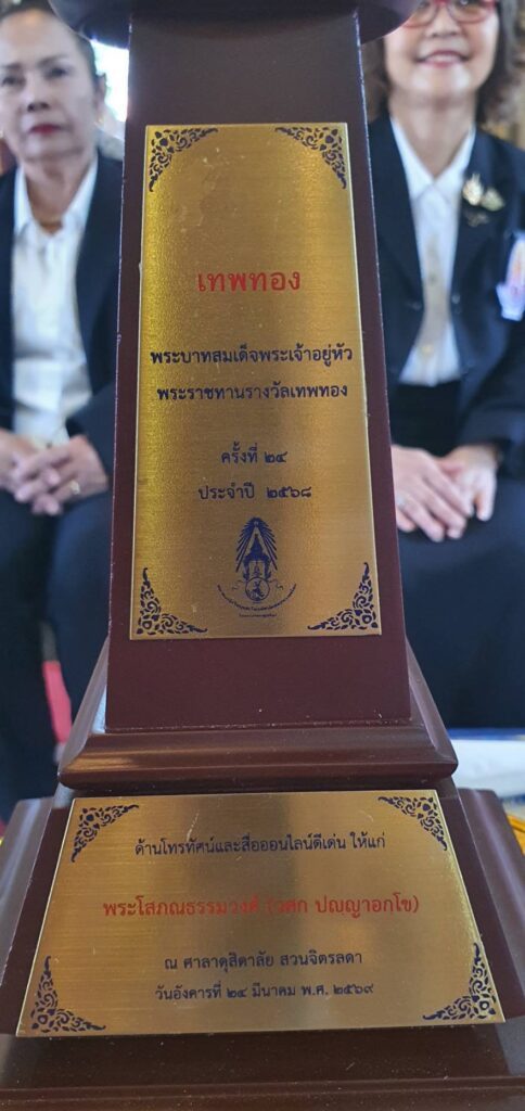 … รางวัลนี้ตอกย้ำถึงความสำเร็จของท่านในการเป็น “พระนักเผยแผ่ยุคดิจิทัล” ที่ไม่หยุดนิ่ง โดยท่านได้นำเทคโนโลยีสมัยใหม่มาประยุกต์ใช้ในการบรรยายธรรมและสอนวิปัสสนาผ่านแพลตฟอร์มยอดนิยม ทั้ง Facebook, YouTube, Line และ TikTok จนเข้าถึงใจคนรุ่นใหม่ นักเรียน และนักศึกษาได้อย่างกว้างขวาง นอกจากนี้ท่านยังสร้างสรรค์สื่อดิจิทัลประกอบการบรรยายในมหาวิทยาลัยชั้นนำ ถือเป็นแบบอย่างของการใช้ภาษาไทยที่ถูกต้องและชัดเจนในโลกออนไลน์ เพื่อสร้างสรรค์สังคมและสถาบันการศึกษาให้เข้มแข็งสืบไป